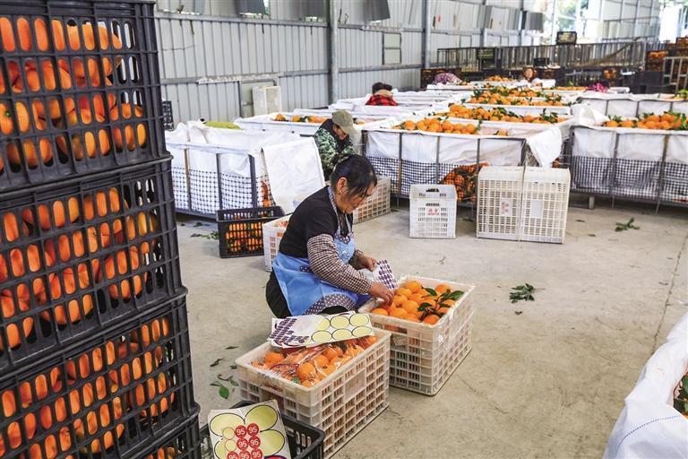 位于酉水河畔的比耳村气候垂直变化明显,光照充足,土壤富硒,孕育出的脐橙不仅营养丰富而且肉质细嫩、甘甜浓郁,很受消费者青睐。村民们忙着采摘、挑选、分类、包装,颗颗饱满的优质果实是对他们辛劳的馈赠。每棵果树从发芽、开花到挂果成熟,全程都离不开村民的精心照料,人工除草、物理防虫害、疏果剪枝……在冬日暖阳的照耀下,这些金黄的橙红的硕果和洋溢着笑容的村民都迎来了属于自己的“高光时刻”。