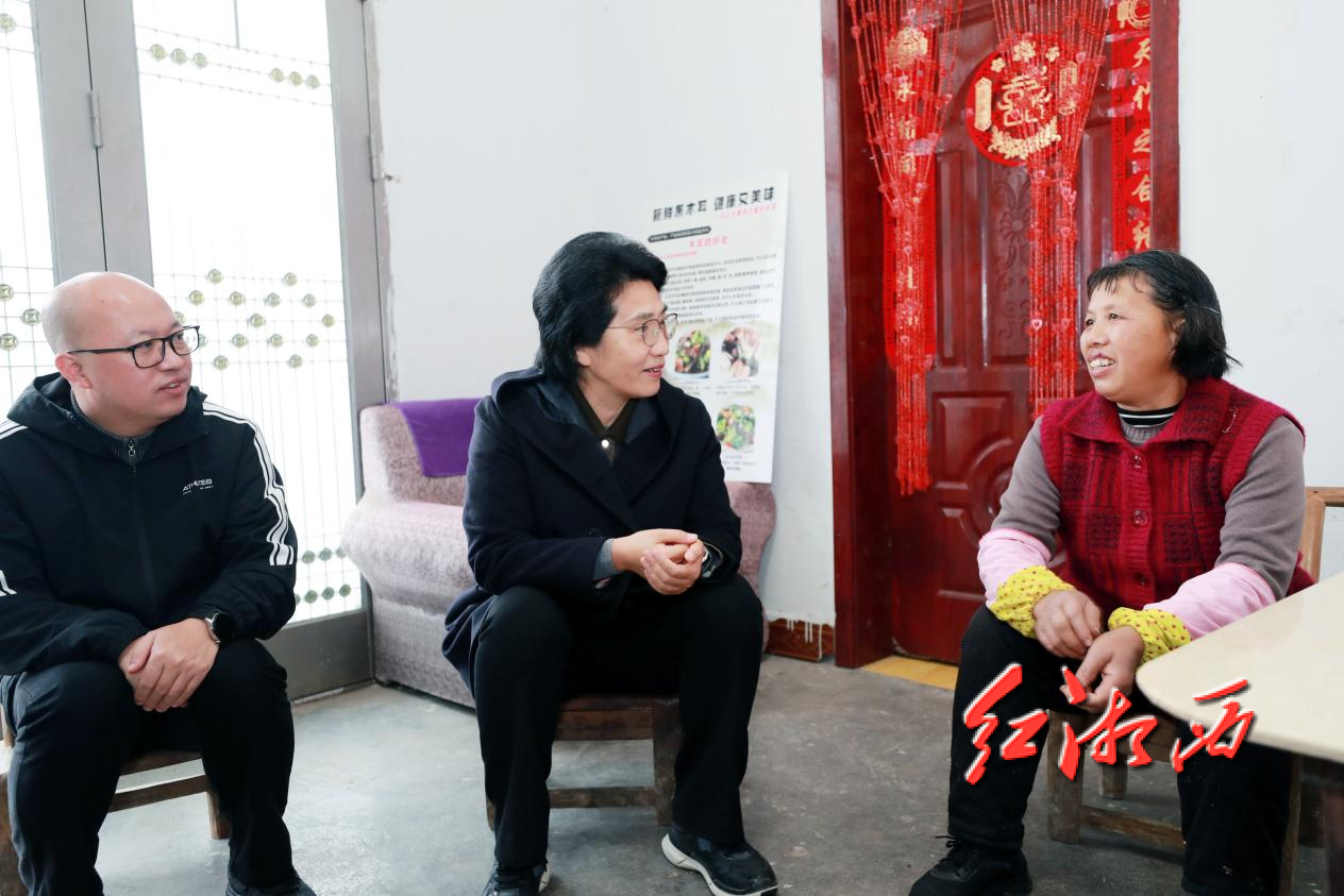 在复兴镇盐井村,陈华详细了解该村在防返贫动态监测、特色产业发展、乡村建设治理等方面的工作举措与成效,走入村民家中询问他们的家庭生活、身体状况、政策享受以及面临的实际困难。她鼓励大家坚定信心,在党和政府的政策帮扶下,勤劳致富。