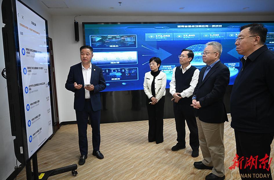 在省数据局,沈晓明观看“湘易办”功能和服务事项、省大数据总枢纽支撑重点应用情况演示,并主持召开座谈会听取省数据局工作情况汇报。他指出,近年来,省委、省政府积极推进数据要素市场化配置改革,大力推进数据归集和共享,数字湖南建设取得了新进展新成效。要在加强统筹联动上下功夫,以编制“十五五”数字湖南建设专项规划为契机,科学做好顶层设计,加强数字基础设施建设统筹,从源头上避免重复建设和资源浪费。要在提升政务服务水平上下功夫,加强数据归集共享与应用场景建设,进一步推动数据融合利用,完善数字政务统一运维与安全体系。要在推动数据工作改革创新上下功夫,推进湖南省国家数据要素综合试验区建设,加快数据市场建设,探索公共数据授权运营机制,走出一条具有湖南特色的数据治理和数字发展之路。要在加强自身建设上下功夫,进一步增强数字思维、数字技能,努力成为数字化建设方面的行家里手,加强党风廉政建设,涵养风清气正的政治生态。