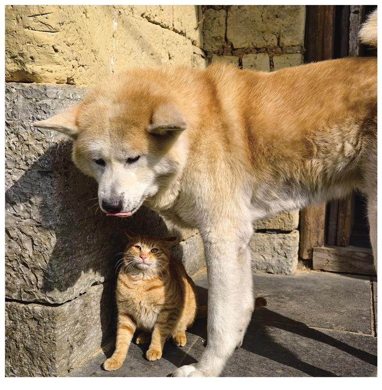 石金娥养了一猫一狗,狗叫可乐,猫儿唤发财,两个小家伙在村里闲走打闹,添了不少生机。