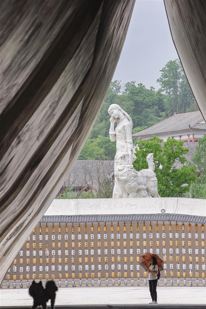 《重逢》5月7日,边城茶峒景区,翠翠静静立着,一位游客与她的小狗从雕像前走过,像是大黄跨越了时光,来赴翠翠的约。这一刻,书里的故事和眼前的画面叠在一起,温柔得让人心安。