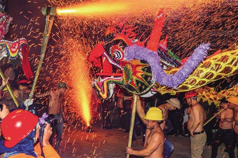 《血性》2月10日,吉首马颈坳镇,赤膊的湘西汉子在钢火烧龙的火雨中腾挪。这就是湘西人刻在骨里的血性。