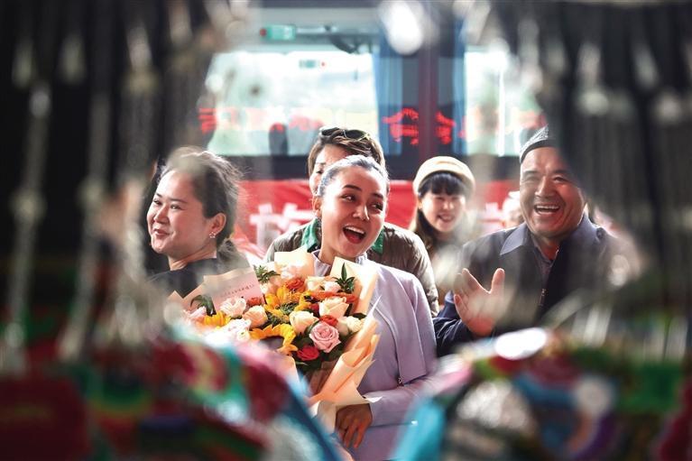 《热情》12月20日,凤凰,吐鲁番的足球队前来参加“湘超”,湘西以拦门酒仪式相迎,吐鲁番的客人捧着花束,笑容灿烂热烈。这就是湘西人的热情。