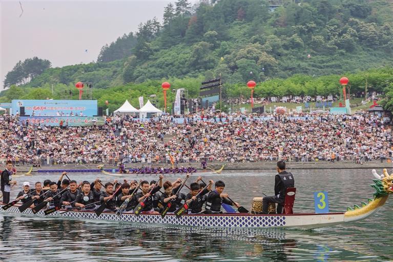 《拼搏》5月24日,古丈栖凤湖,2025“龙腾潇湘”传统龙舟大赛(古丈站)的鼓点和呐喊震彻湖面。