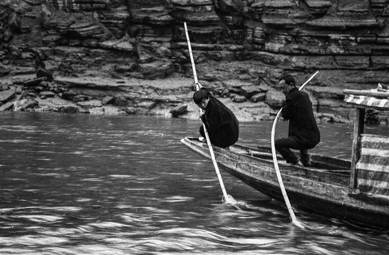 1999年,保靖县酉水河,木船逆水而上,篙如弓,人如弦。 张谨 摄