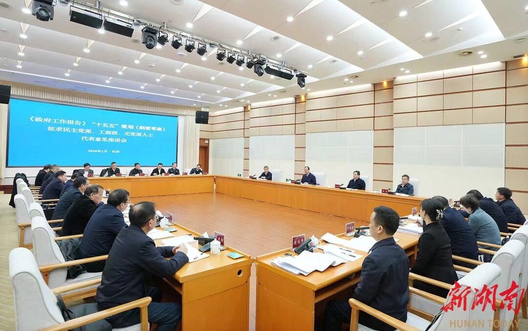 华声在线1月5日讯(全媒体记者 孙敏坚)5日下午,省政府举行座谈会,征求各民主党派省委会、省工商联负责人和无党派人士代表对2026年《政府工作报告》和省“十五五”规划《纲要草案》的意见建议。省委副书记、省长毛伟明强调,要深入贯彻党的二十届四中全会以及中央经济工作会议精神,落实省委十二届十次全会暨省委经济工作会议要求,把“湖南所需”与“党派所长”结合起来,进一步凝聚人心、服务中心、提振信心,为“十五五”开局贡献更多智慧力量。