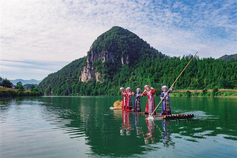 弃筏上岸,漫步沿河新修建的游步道,新式民居依山傍水,彭李王三姓世代相守,多民族共居的烟火气格外绵长。打量这个静谧与诗意交织的村庄,不禁有时光倒流之感。