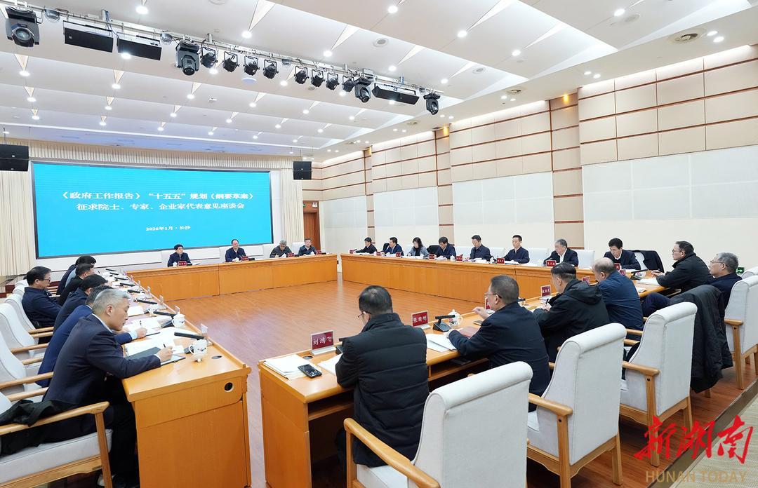 华声在线1月7日讯(全媒体记者 孙敏坚)7日上午,省委副书记、省长毛伟明主持召开座谈会,征求部分院士、专家、企业家代表对2026年《政府工作报告》和省“十五五”规划《纲要草案》的意见建议。他强调,要深入贯彻党的二十届四中全会以及中央经济工作会议精神,按照省委、省政府工作部署和安排,努力抢占科产融合制高点,共创湖南高质量发展新局面。