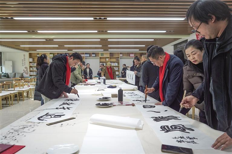 书画家们现场为大家题字。 团结报全媒体记者 宿中元 摄