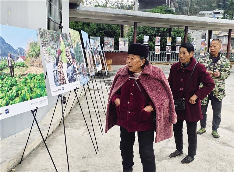 巡展路上,老人们的目光拂过一幅幅作品,如同抚摸岁月的纹理。他们小心翼翼地拂去夜露留下的痕迹,加固被风吹松的绳索和螺钉,下雨前细心地将部分作品收进檐下。他们守护的,是物质化的照片,更是照片背后流动的集体记忆与身份认同。