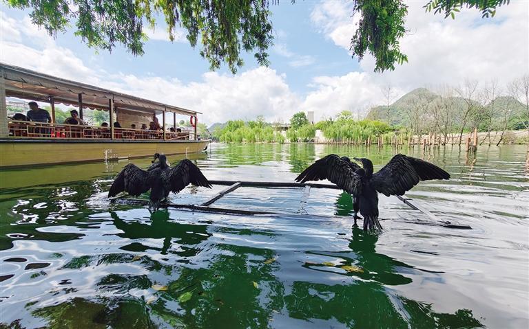 鱼鹰转型 2025年8月21日,花垣县边城镇码头,昔日清水江上的捕鱼能手鸬鹚,如今成了深受游客欢迎的“群众演员”。