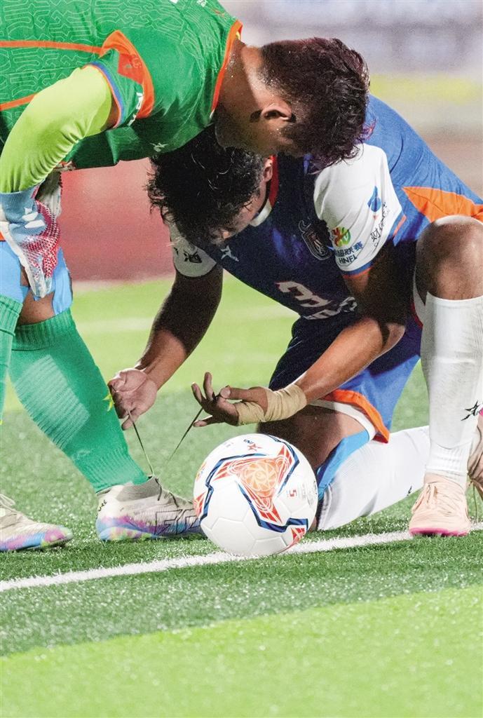 俯身 2025年9月13日,凤凰县民族体育运动中心,湘超联赛比赛间隙,一位球员俯身为守门员系紧鞋带。体育比赛除了竞技,还有热爱、尊重与包容。