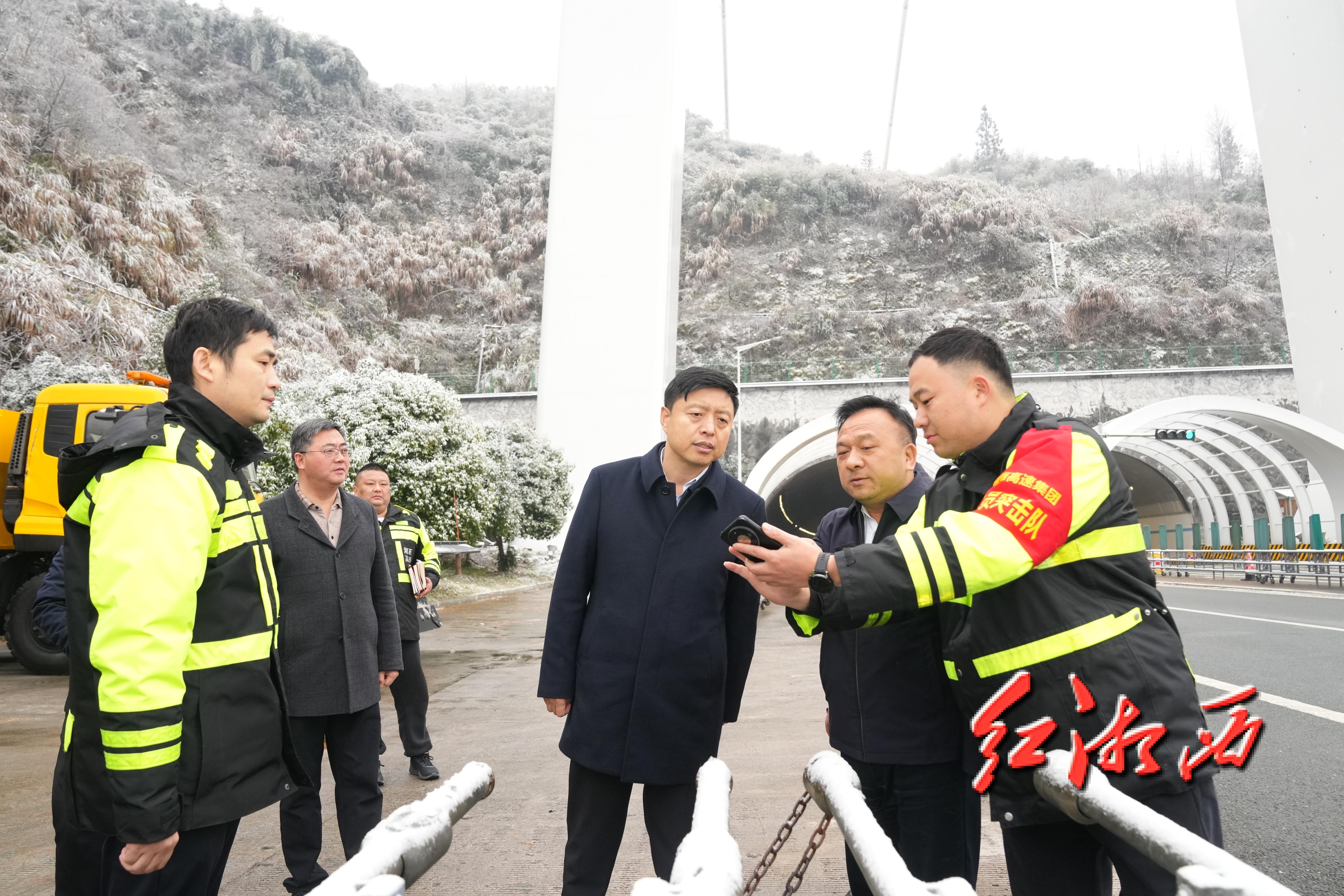 刘涛在矮寨大桥现场督导大桥除冰保畅工作。团结报全媒体记者 刘炜 摄