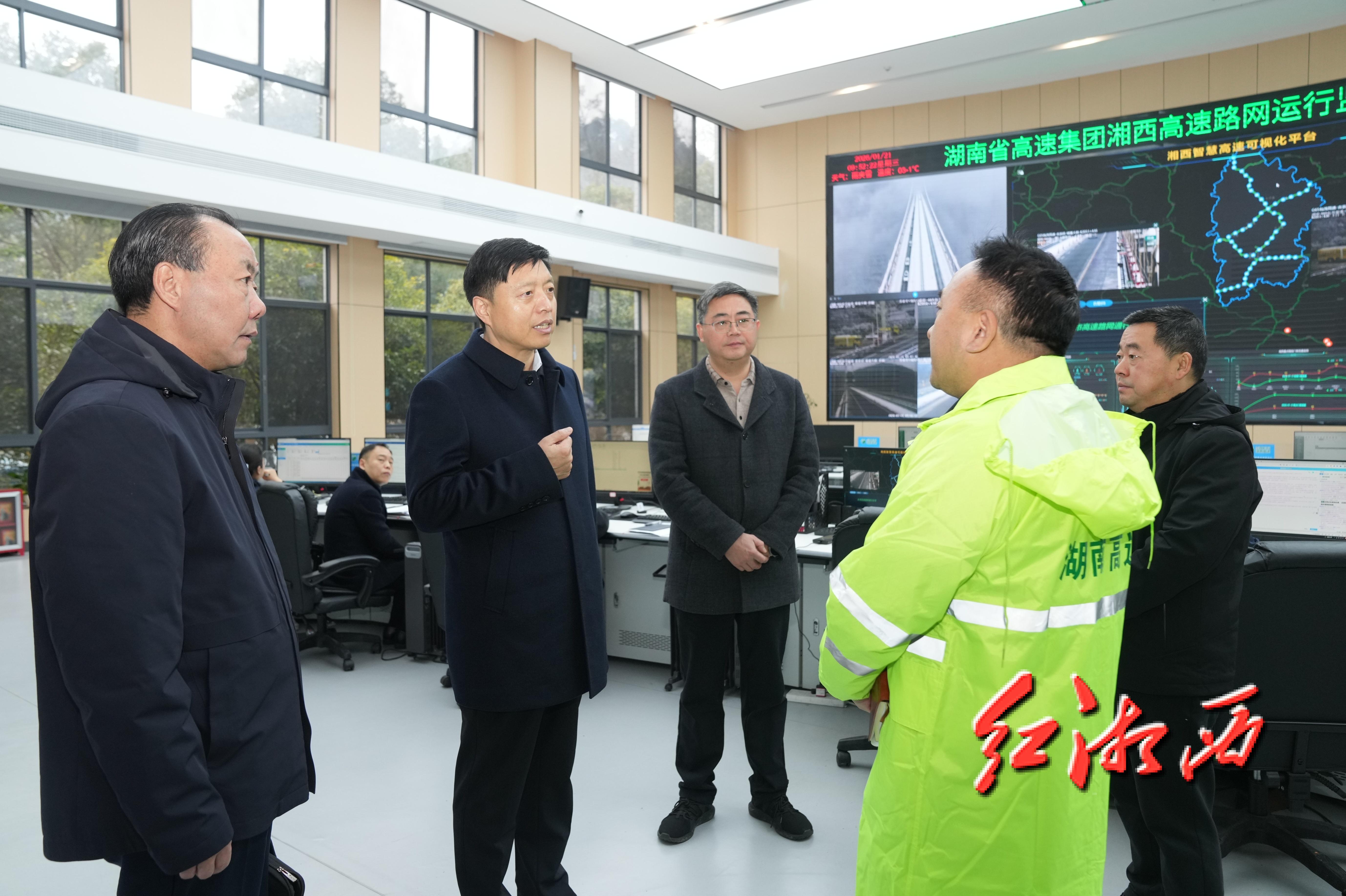 刘涛首先来到湘西高速路网运行监测指挥中心,详细了解全州高速公路通行情况,对省高速集团湘西分公司全力保障辖区高速公路安全畅通给予肯定。他指出,要密切关注天气变化,充分发挥智慧平台作用,完善应急预案,备足应急物资,加强道路巡逻和路面保障,全面提升高速公路交通应急处置能力。随后,刘涛前往矮寨大桥、矮寨德夯高速路口、湘西高速养护工程公司矮寨工区,实地察看交通疏导、除雪机械调配、融雪除冰作业等情况,看望慰问坚守岗位的一线执勤人员,对他们不畏严寒、辛勤付出表示衷心感谢,叮嘱大家注意自身安全、做好防寒保暖。他要求相关部门科学安排轮岗值守,配足防寒保暖物资,强化后勤服务保障;紧盯重点路段和关键节点,加强监测预警和应急值守,扎实做好融雪除冰、交通疏导工作,全力保障高速公路畅通和群众出行安全。