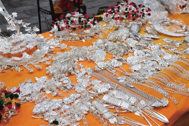 非遗摊位上的苗族银饰琳琅满目,任君挑选。