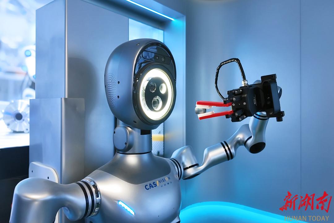 湖南具身智能创新中心,“手-眼-脑”协同的质检机器人对产品进行检测。华声在线全媒体记者 范远志 摄