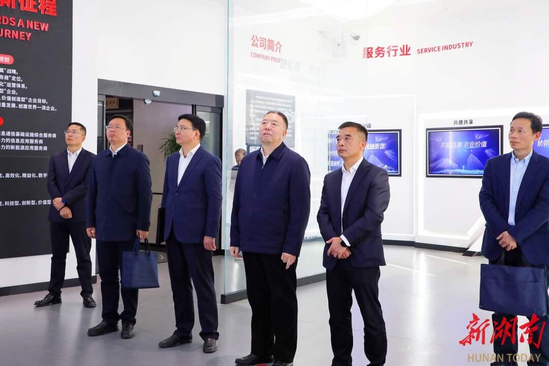 毛万春在中国铁塔股份有限公司湖南省分公司企业业务展厅调研。