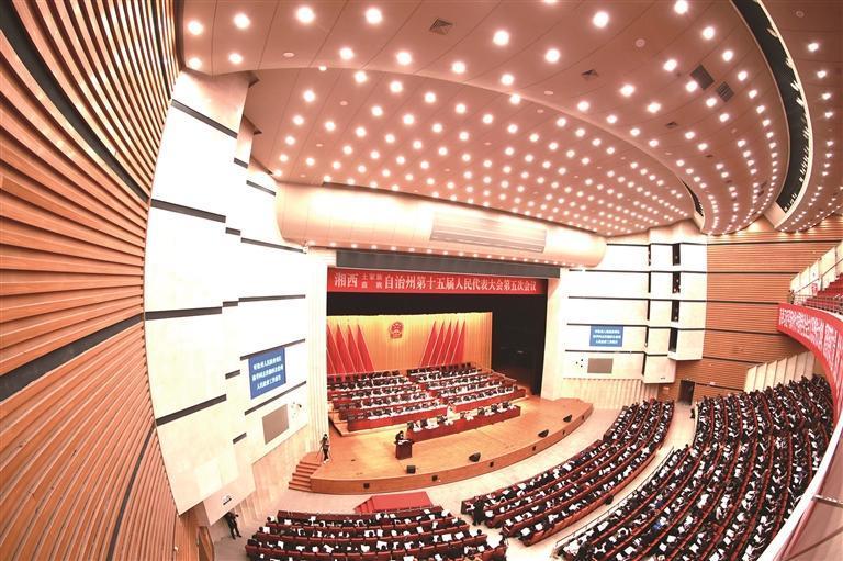 2月9日,湘西州第十五届人民代表大会第五次会议在武陵山大剧院开幕。本报全媒体记者 彭伟 摄