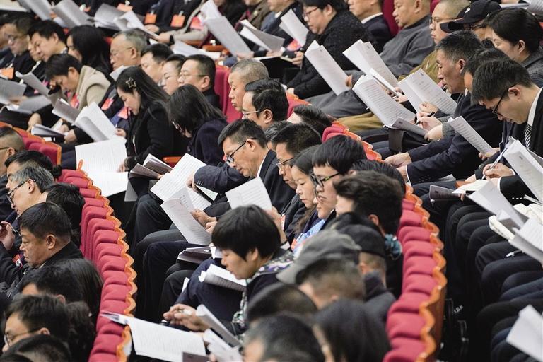 两会“代表委员通道”采访现场。