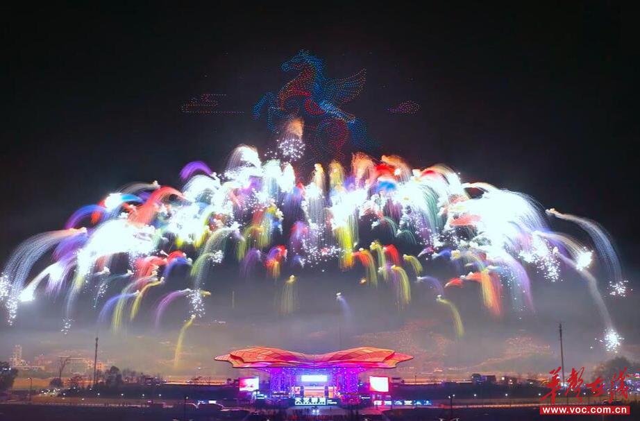 “盛焰同春·烟火里的中国年”2026马年新春焰火晚会在浏阳天空剧院璀璨上演。邓霞林 摄