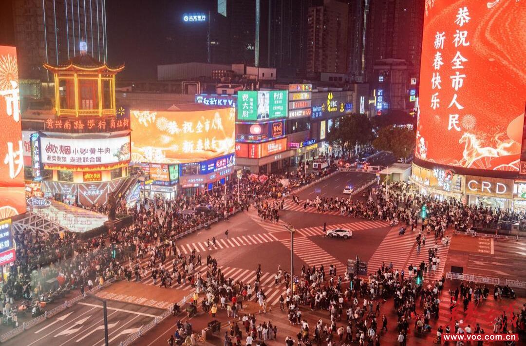 春节假期,长沙市五一商圈人流如织。李健 摄