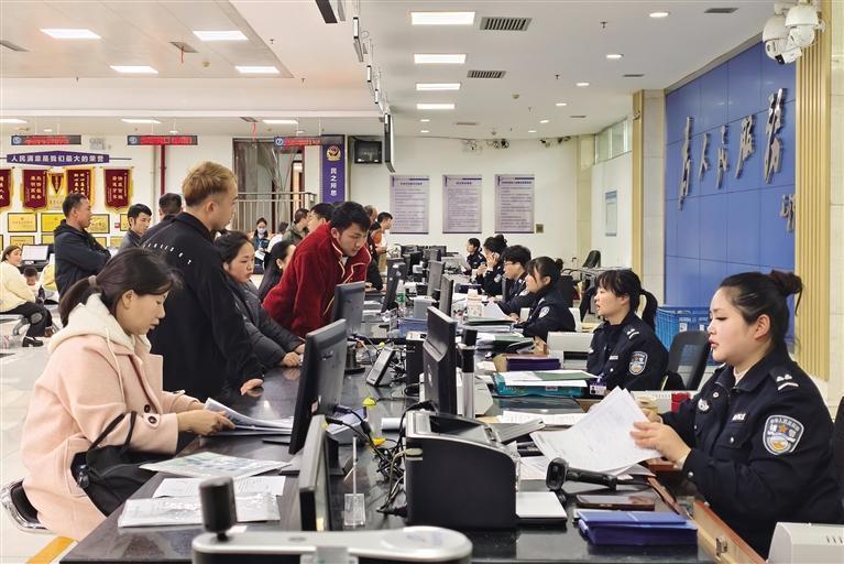 2月24日,州公安局交通管理支队车管所民警热情地为前来办事的群众办理各项业务。团结报全媒体记者 张衡 摄
