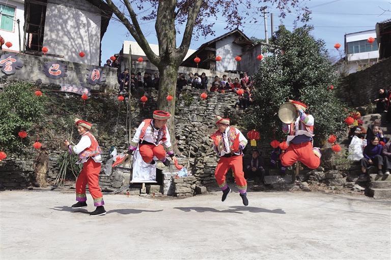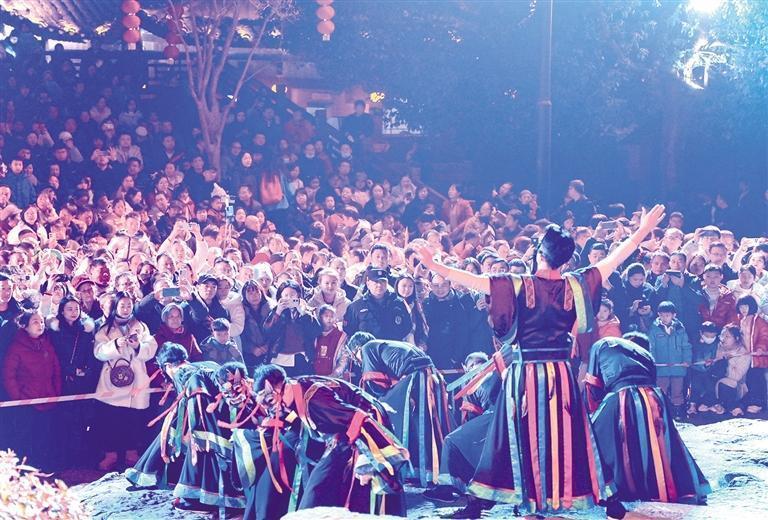 春节期间,花垣县双龙镇岩锣村举办文化活动,群众欢聚一堂观看表演体验年俗,苗乡山寨十分热闹,年味浓厚。龙恩泽摄