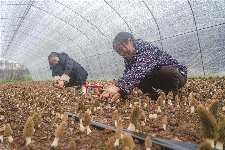 村民在采收羊肚菌。 杨帆 摄