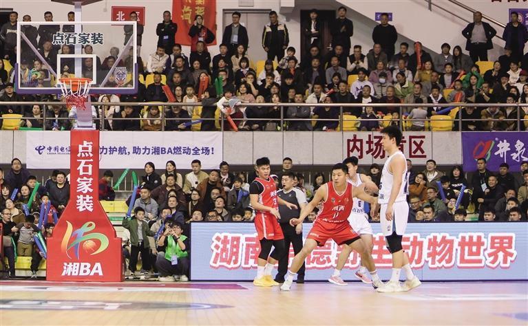 上半场,湘西队吃尽了苦头:内线大将何佳伟五次犯规离场,篮板球失控,进攻支离破碎。比分37∶63,26分的分差像一盆冰水,浇在湘西队身上。