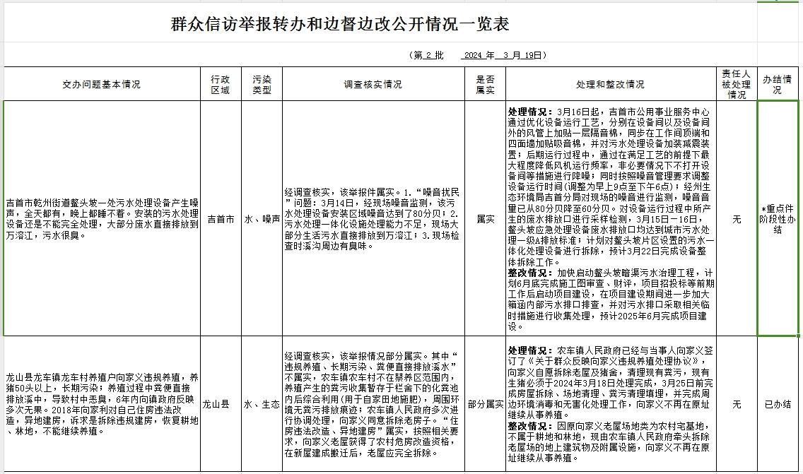 群众信访举报转办和边督边改公开情况一览表(3月19日)