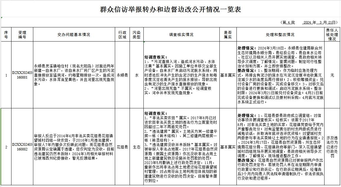 群众信访举报转办和边督边改公开情况一览表(3月21日)
