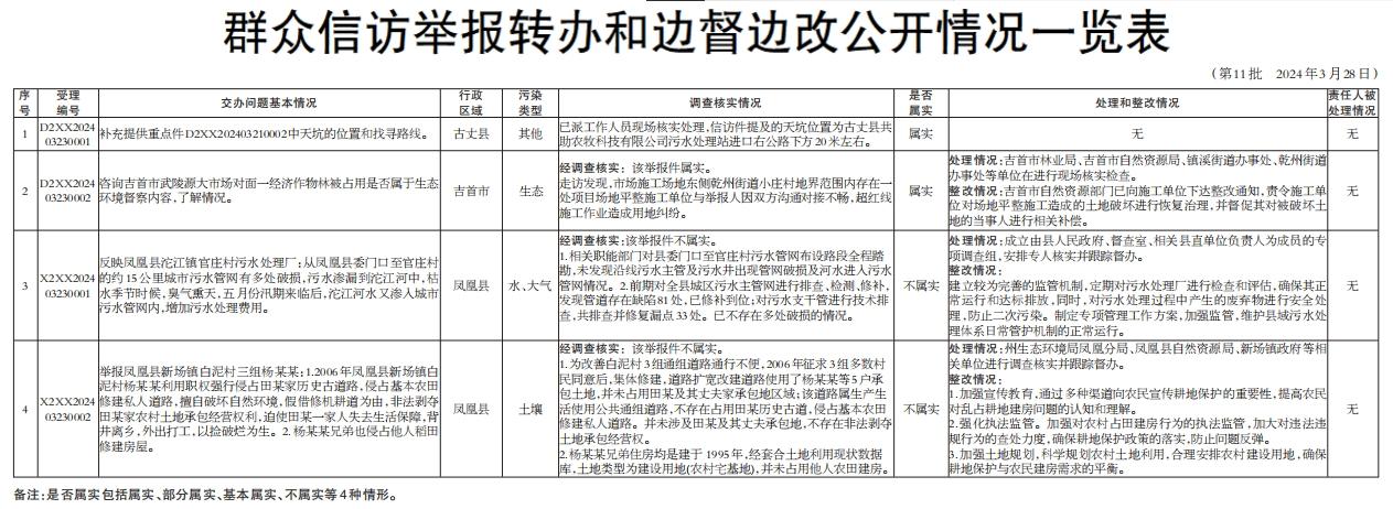 群众信访举报转办和边督边改公开情况一览表(3月28日)