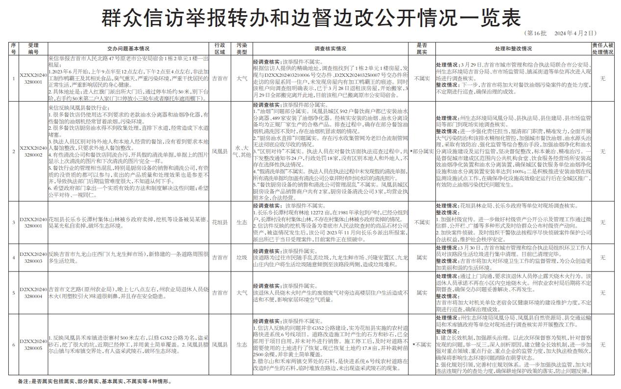 群众信访举报转办和边督边改公开情况一览表(4月2日)