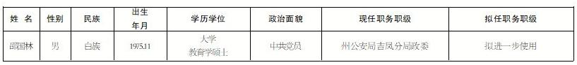 加强对干部选拔任用工作的监督,提高识别和任用干部的准确度,现对州委常委会会议研究决定的下列1名拟任职人选予以任前公示: