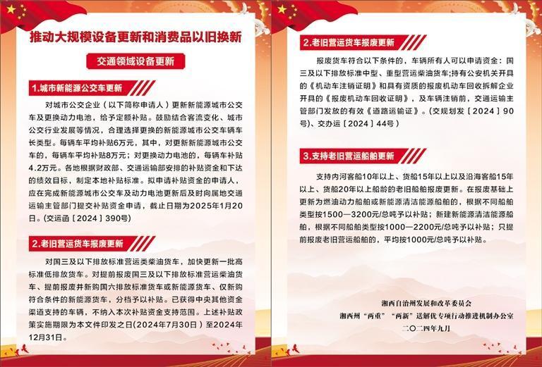 湘西州推动大规模设备更新和消费品以旧换新:交通领域设备更新