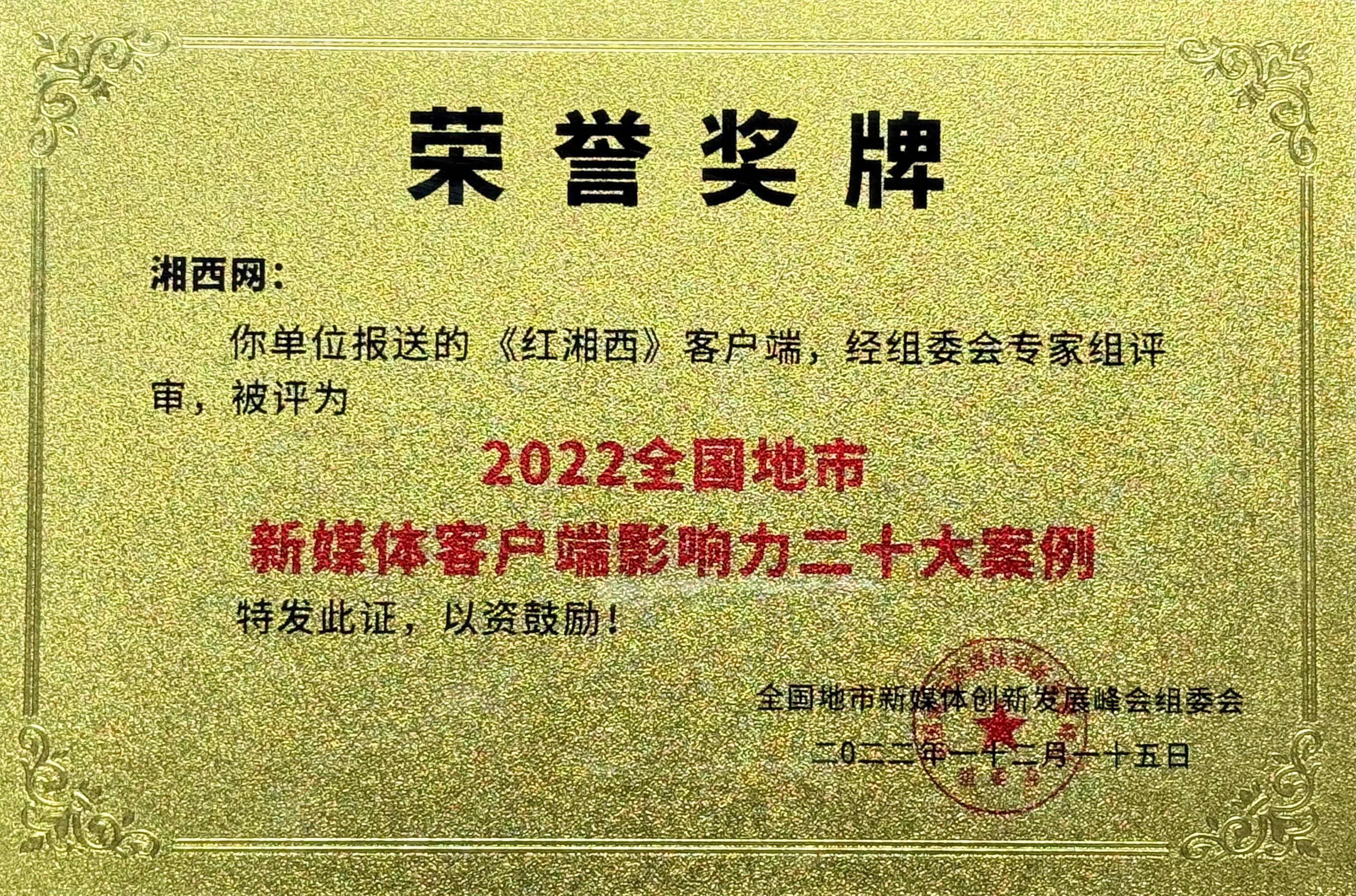 红湘西新闻客户端被评为“2022年度全国地市新媒体客户端影响力二十大案例”