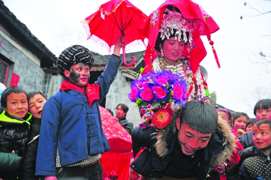 伞一路上得是半开的,有遮风避雨、驱邪避害的象征意义,而且在途中不能将伞给其他人,要到男方家才能将伞交给男方的人。
