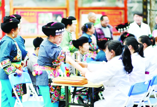 医务工作者下乡义诊,为村民建立健康档案。 袁桂湘 摄