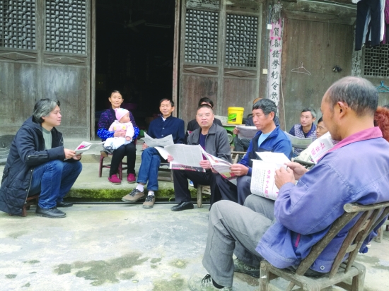 新时代扬帆起航,新征程任重道远。10月26日,在党的十九大会议精神的鼓舞下,永顺县审计局领导带领党员干部和扶贫队员,走进大山深处的岩板村,及时把党报送到村民手中,组织村干部和村民学习十九大精神,开展扶贫项目跟踪检查等工作。图为局领导为村民讲解十九大主要内容。 向朝森 唐 华 摄