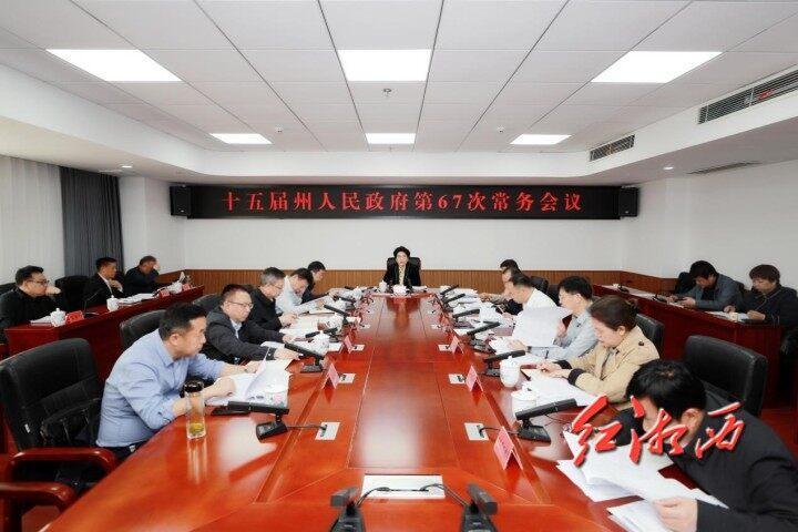 湘西网4月9日讯(全媒体记者 陈海泉)4月8日,湘西州委副书记、州长陈华主持召开十五届州人民政府第67次常务会议,传达贯彻3月31日中央政治局会议精神、学习贯彻习近平总书记在参加首都义务植树活动时的重要讲话精神,全省党委和政府秘书长会议精神,听取有关工作汇报。