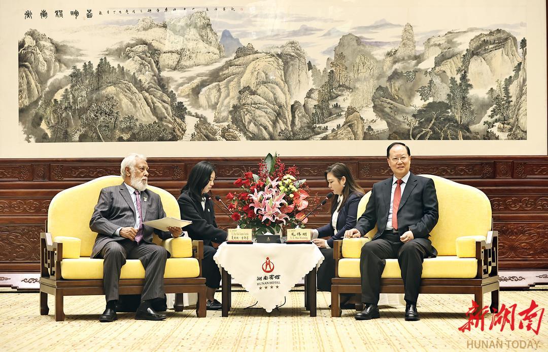 毛伟明对夏纳纳一行的到来表示欢迎。他说,湖南与东帝汶是跨越山海、守望相助的好朋友、好伙伴。我们因“杂交水稻”结缘,近年来,双方高层往来频繁、项目合作成果丰硕、民生合作深入人心。特别是湖南的水稻蔬果在东帝汶开花结果,湖南的农机装备在东帝汶田野轰鸣,湖南团队实施的畜牧养殖、修建饮水井等项目深受当地百姓欢迎。毛伟明表示,湖南将持续落实好两国元首达成的重要共识,积极融入高质量共建“一带一路”,不断深化人员交流交往,进一步加强与东帝汶在农业、医疗卫生、矿产开发、文化科技等领域的合作,为巩固两国全面战略伙伴关系、构建周边命运共同体贡献湖南力量。