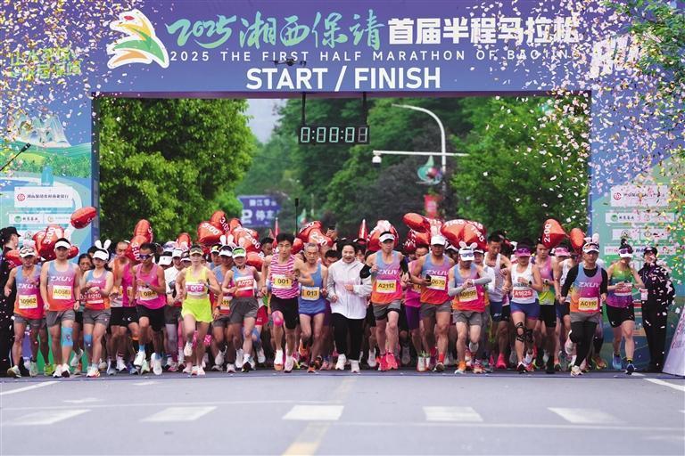 4月20日,2025湘西保靖首届半程马拉松在酉水河畔鸣枪开赛。 团结报全媒体记者 杨贤清 摄